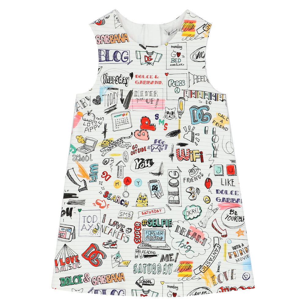 Dolce Gabbana Girls White Smemo Sleeveless Dress Junior Couture Usa