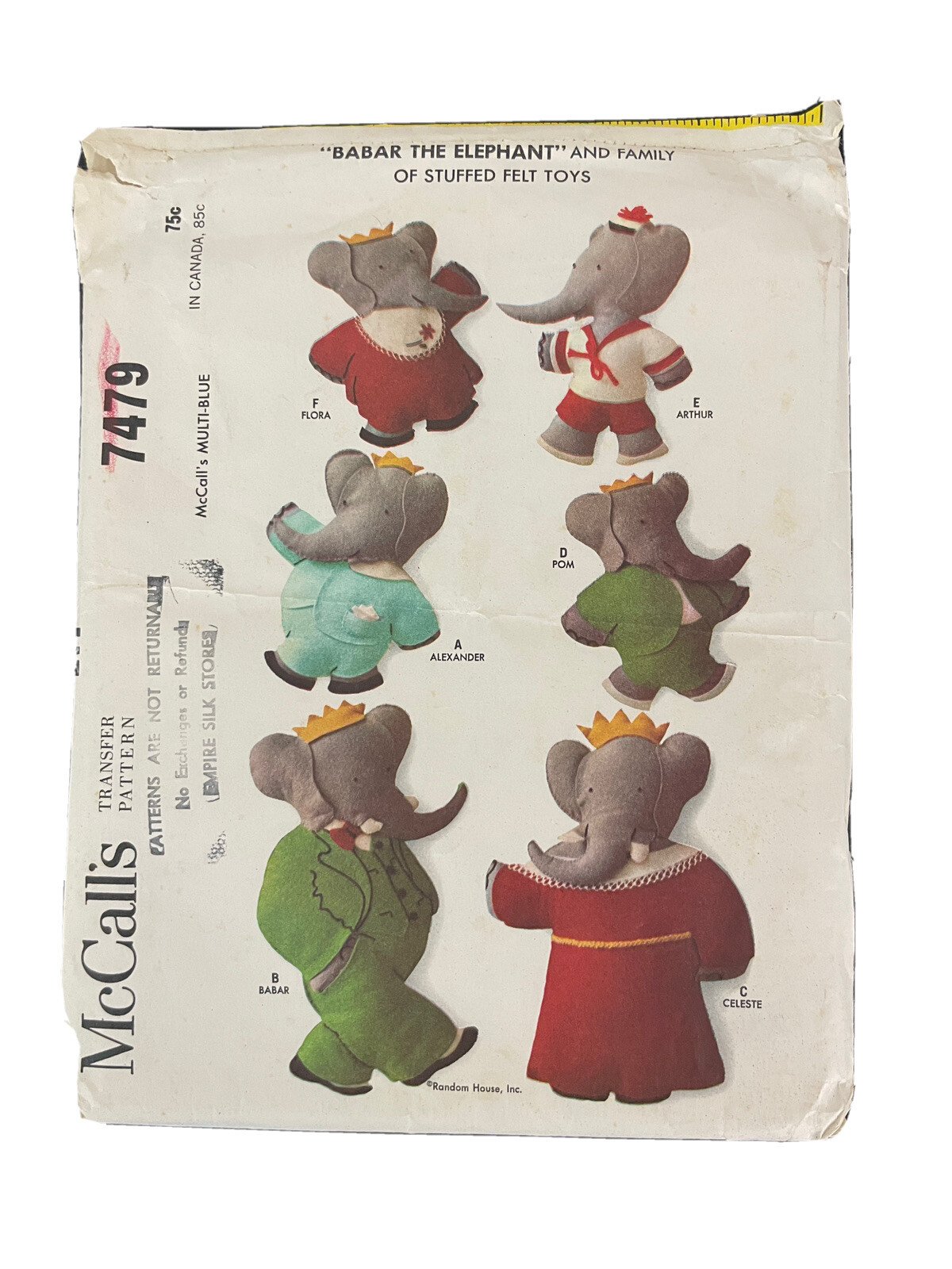 Mccall 7479 Babar The Elephant Family Stuffed Felt Toys Sewing Pattern 1964 Ebay